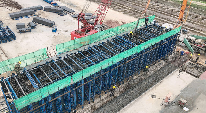 4月1日,由公司承建的防城港钢铁基地103号泊位完成第一榀预应力轨道梁浇筑施工。