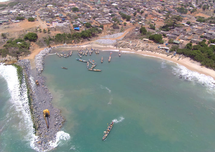 据悉,目前Senya及Fete渔码头已完成防波堤堤心石推填及外侧防护施工,为后续码头方块结构施工和港池疏浚等提供了有效的掩护。