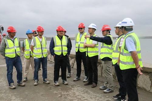 郑远斌一行实地查看了南通港吕四作业区西港池8#-11#码头工程EPC项目B标段施工现场,听取了项目负责人关于工程施工总体部署、安全、质量及进度情况的汇报,详细了解了本工程船机设备使用计划及已进场船机设备等情况。郑远斌强调,项目在船机设备选型时,要根据现场施工作业内容、船机设备的安全性能、操作人员技能素质及现场作业条件等多方面因素进行综合考量。