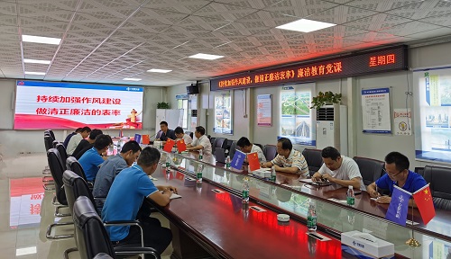 期间,古新标为项目部广大党员干部开展《持续加强作风建设,做清正廉洁表率》廉洁教育党课,从国家、企业、个人等不同角度,分析了国家当前反腐败斗争形势的严峻性、企业加强党风廉政建设的必要性以及党员干部队伍素质提升的紧迫性,要求项目部全体党员干部要树立纪律红线意识,提升防腐拒变能力,让廉洁自律成为职业道路上的“防护栏”。
