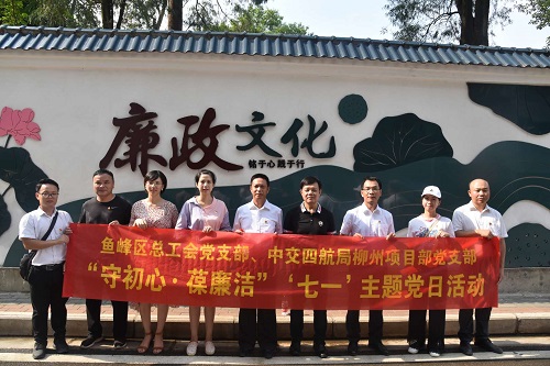 7月1日,柳州项目部党支部联合鱼峰区总工会党支部开展以“守初心 葆廉洁”为主题的党日活动,观看反腐倡廉宣传展览,学习先进党员光荣事迹、党的发展史。(符传栋)