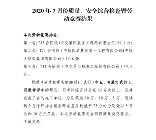 近日,公司承建的G15沈海高速公路TJ5合同段项目在业主代建指挥部组织开展的质量、安全综合检查暨劳动竞赛中取得第一名。