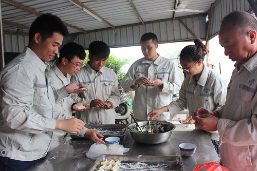 为弘扬中国传统文化,丰富员工业余生活,增进员工之间互动与团结,营造浓情温暖的节日氛围,9月25日,钦州项目部开展“迎国庆 庆中秋”包饺子活动。(刘月群)