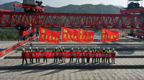 12月7日,广连高速TJ03标三坑尾大桥最后一榀箱梁架设完成,顺利实现了标段内首座桥梁全幅贯通。