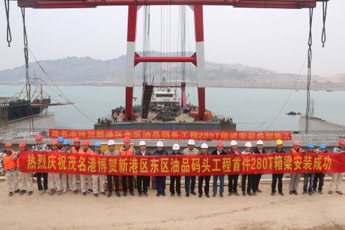 日前,茂名港博贺新港区东区油品码头工程首件箱梁顺利架设完成,标志着油品码头项目进入全面架梁施工阶段。