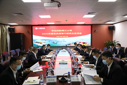 1月25日,公司党委召开了2020年度党员领导干部民主生活会,主题为“认真学习贯彻习近平新时代中国特色社会主义思想,加强政治建设,提高政治能力,坚守人民情怀,夺取决胜全面建成小康社会、实现第一个百年奋斗目标的伟大胜利,开启全面建设社会主义现代化国家新征程”。四航局纪委书记费永忠、纪委办主任罗超飞到会指导,公司党员领导班子成员参加会议,四航局二级咨询、公司党群部门负责人列席会议,会议由公司党委书记黄祥波主持。