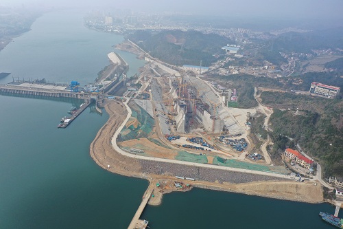 3月23日,万安枢纽二线船闸工程上闸首左边墩顺利封顶。