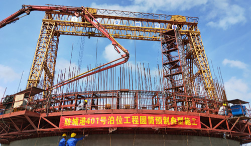 6月12日,防城港渔澫港区第四作业区401泊位码头工程首件圆筒筒身顺利浇筑完成。