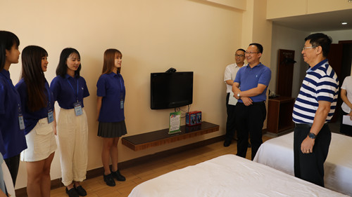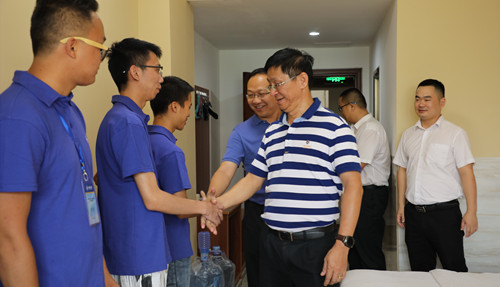 7月12日,公司党委书记黄祥波、党委副书记吴海飞一行到怡景酒店看望慰问2019届新员工。