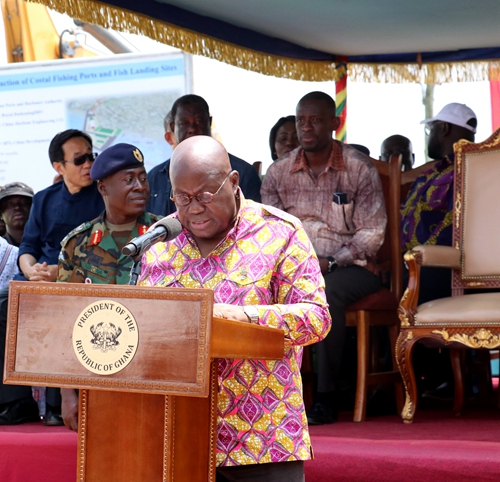 阿库福·阿多为项目奠基并表示,相信渔港项目会给更多的加纳人民带去更好的生活、更多的希望,他相信项目会按期保质完成。