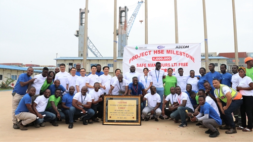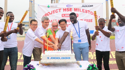 7月30日,加纳特码LNG码头项目举行“百万安全工时”庆典活动,业主TLTC代表Edmund、咨工AECOM代表Vernon及项目全体员工参加了此次活动。