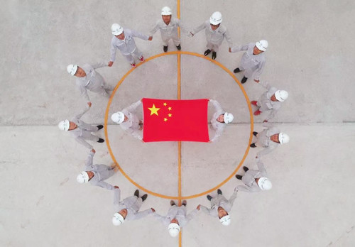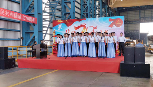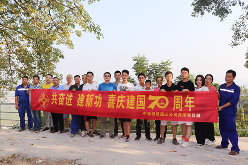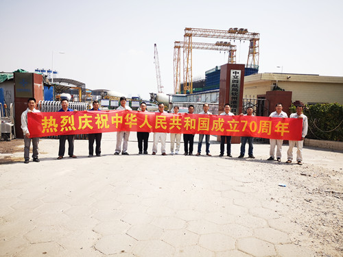为迎接新中国成立70周年,钦州项目部组织开展了一系列庆祝活动,比如悬挂横幅、举行升旗仪式、观看阅兵典礼等。