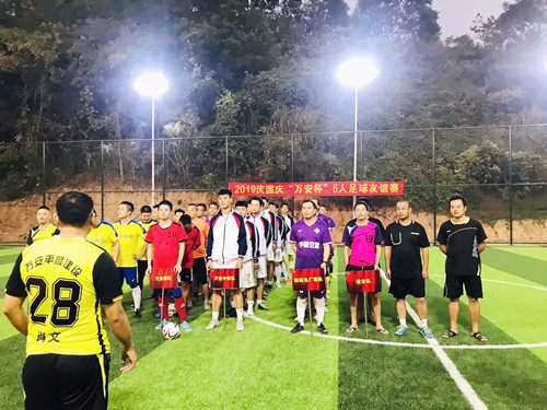 万安项目部在国庆期间组织各参建单位开展“庆祝新中国成立70周年知识竞赛”活动,举办“万安杯”足球友谊赛,还组织员工观看了爱国电影。