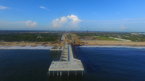 近日,由中国港湾承建、四航局参建的尼日利亚丹格特栈桥项目主体工程完工。