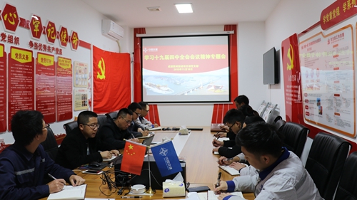 宜宾项目部党支部组织全体党员和发展对象学习党的十九届四中全会精神。围绕一个定位、三个“是”、十三方面“显著优势”、总体目标、十三个“坚持和完善”、重大战略任务等方面进行了详细解读。