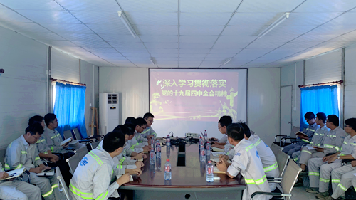 科特迪瓦项目部党支部分别于北部公路项目和阿比让港口扩建项目部开展了十九届四中全会精神学习专题会,就当前时政热点进行了充分讨论。