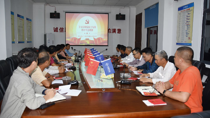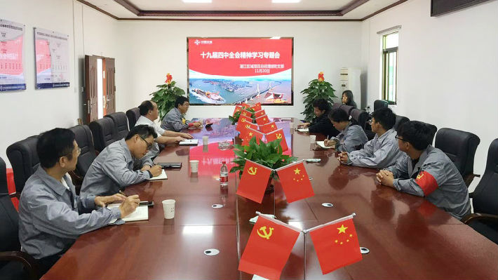 湛江区域项目总经理部党支部举办学习贯彻党的十九届四中全会专题会,深入学习领会全会精神,并结合对照党章党规找差距调研结果进行分析及相关措施整改。
