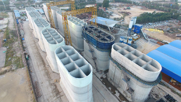 该工程共有11件椭圆形沉箱,单件沉箱长26米,宽13米,高22.7米,混凝土1272立方米,单件重3180吨,采用立模分层预制工艺,有效降低了质量管控难度,提高了构件施工质量。通过合理安排、精心施工,克服了公司首例的椭圆形沉箱预制难题,历时3个月,优质、高效地完成了全部沉箱预制,为码头施工打下了坚实的基础。