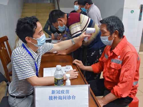 海口新海枢纽项目部党支部时刻关心一线工人队伍,重点解决工人在吃住行方面的难题,着力提高工人幸福感,保生产提进度,为应对海南即将到来的酷暑,特别设立了工人休息驿站,为一线工人加快施工生产提供充分的后勤保障。同时,党支部积极与秀英区政府、西秀镇政府取得联系,组织员工接种新冠疫苗,确实保障员工的生命健康,也为海南省全面推进新冠疫苗注射工作,促进消博会的顺利开展做出了积极贡献。(符传栋)